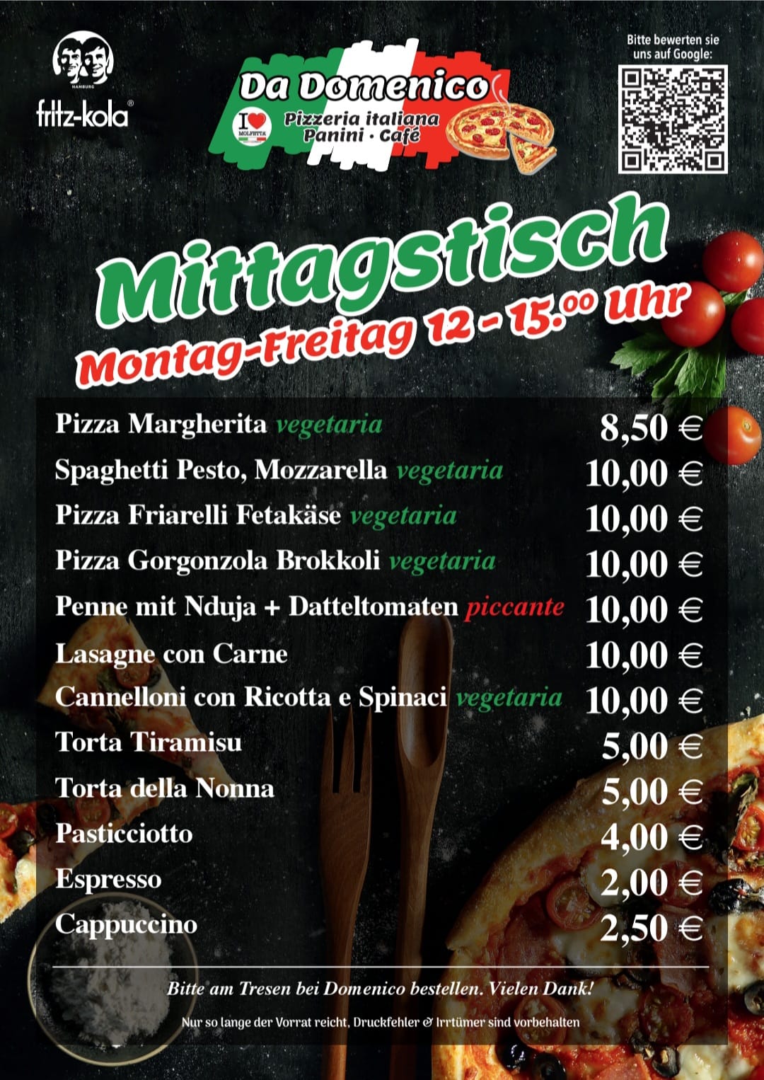 Knusprige Steinofenpizza, hausgemachte Pasta und feinste italienische Feinkost. Frisch von Domenico für Sie zubereitet.